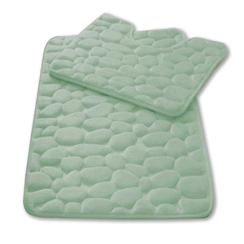 GC GAVENO CAVAILIA Pebble Stone Bath Mat Non Slip | 2Piece Memory Foam Bath Mat Set Washable Rug Super Absorbent Shower Pedestal Mat | Quick Dry Bathroom Toilet Mat Sets BathMat, Green