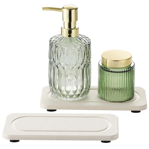 Razborci 2 Pack Bathroom Sink Vanity Trays, Diatomite Stone Kitchen Counter Caddy Dish Soap Dispenser Sponge Holder, Water Absorbing Mat Organizer for Plant,Cosmetic Bottle, Gray Beige, 8"x3.8"