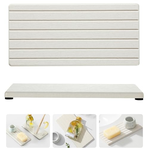 Stone Bath Mat - White Bathroom Accessories - Luxury Dish Drying Mat for Kitchen & Bathroom Floors - Moisture Absorbing Diatomaceous Earth Shower Mat