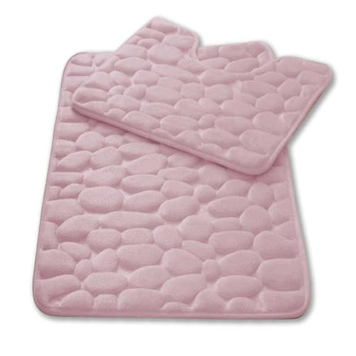 GC GAVENO CAVAILIA Pebble Stone Bath Mat Non Slip | 2Piece Memory Foam Bath Mat Set Washable Rug Super Absorbent Shower Pedestal Mat | Quick Dry Bathroom Toilet Mat Sets BathMat, Blush Pink