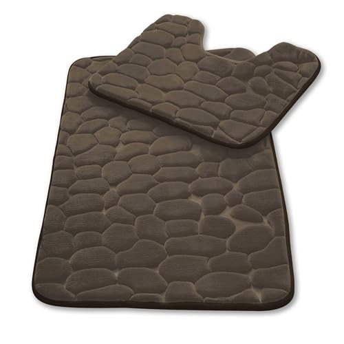 GC GAVENO CAVAILIA Pebble Stone Bath Mat Non Slip | 2Piece Memory Foam Bath Mat Set Washable Rug Super Absorbent Shower Pedestal Mat | Quick Dry Bathroom Toilet Mat Sets BathMat, Natural