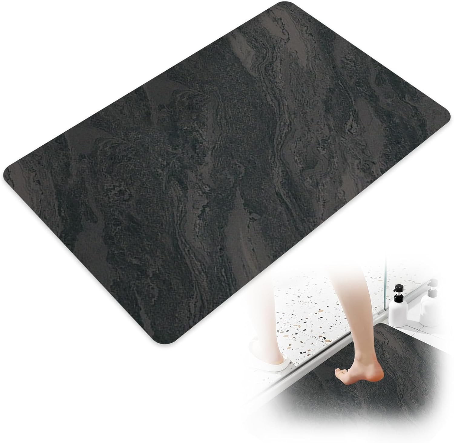 NAYAHOSE Stone Bath Mat, 100% Natural Diatomaceous Earth Shower Mat, Non-Slip Super Absorbent Quick Drying Bathroom Floor Mat, Shower Mat for Bathroom Floor, Easy to Clean (Dark grey)