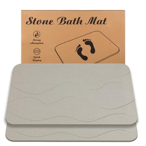 JUERLEN 2 Pack Diatomaceous Earth Shower Mat, Stone Bath Mat, Nonslip Super Absorbent Fast-Drying Hard Bath Mat for Bathroom Shower Floor, 24 x 16 inch, Grey Wave Design