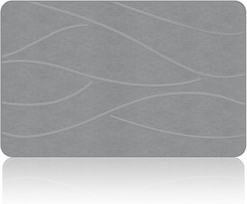 Stone Bath Mat, 23.5 x 15.4 in, Diatomaceous Earth Bath Mat Non-Slip Super Absorbent Stone Bath Mats for Bathroom Mat Quick Drying Bathroom Floor Mat, Natural, Easy to Clean, Curve - Grey