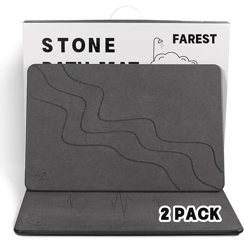 Graplife Stone Bath Mat 2 Pack, Tub & Bathroom Floor - Super Absorbent Diatomaceous Earth Shower Mat, Non-Slip Fast-Drying Mat for Kitchen Counter, Elegant Home Decor & Modern Accessories Gray
