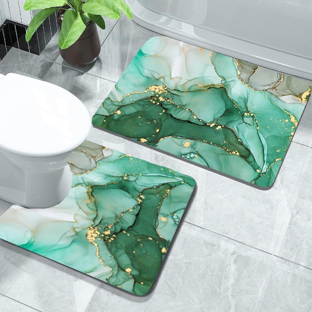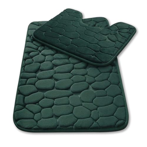 Green stone bathroom Mat 2 Piece Sets Non-slip bath mats, absorbent bath mat wi