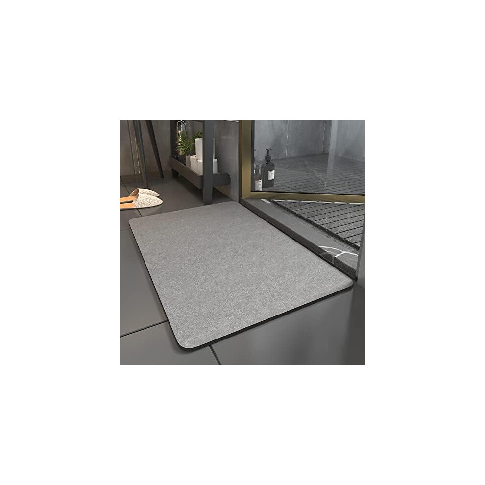 Diatomaceous Earth Bath Mat Rugs Super Absorbent Diatomite Stone Bath Mat Non Slip Quick Dry Thin Bathroom Mat Fit Under Door, Floor Rugs in Front of Bathtub, Shower Room, Sink,15.7"x23.6", Grey