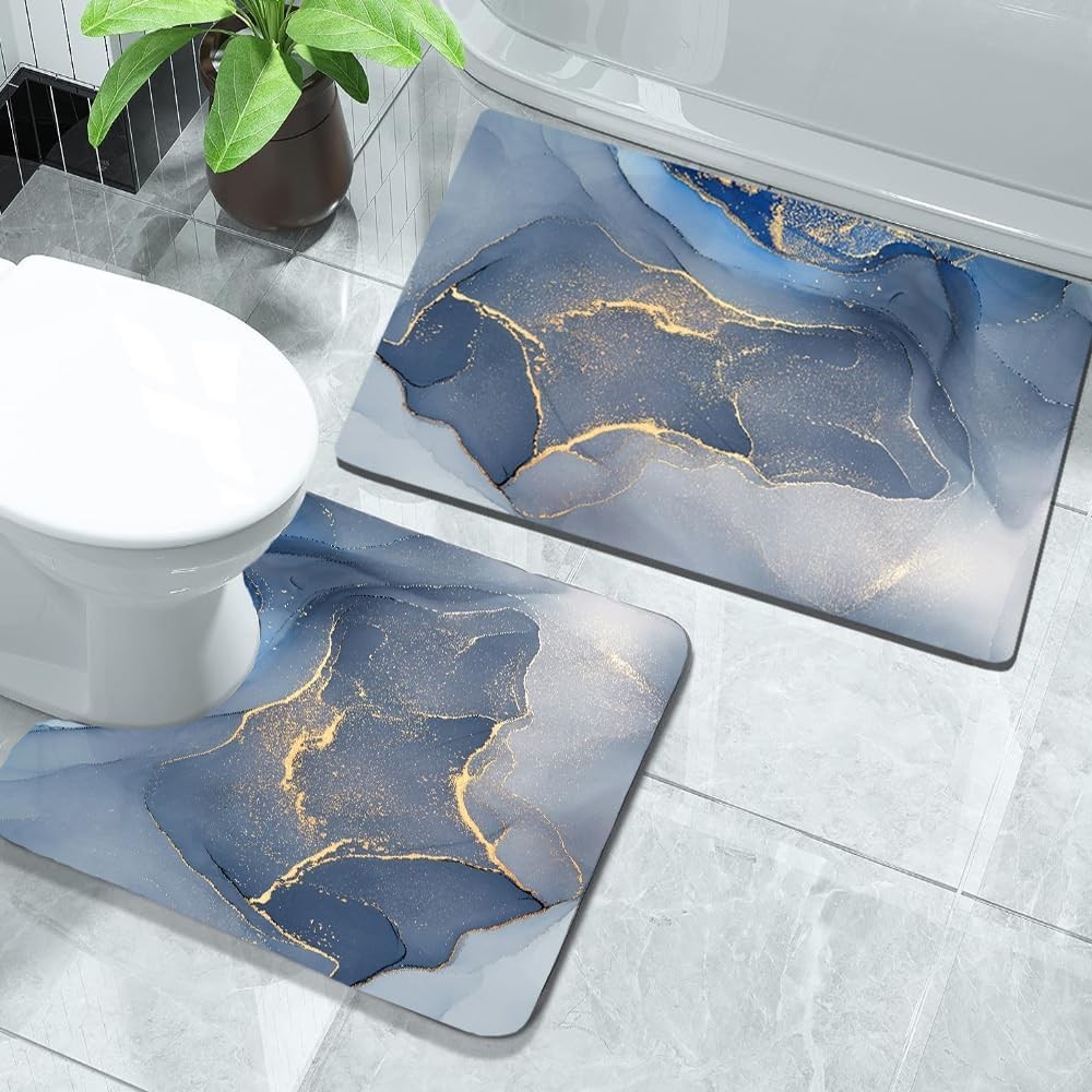 Blue stone bathroom mat 2 Piece Sets Non-slip bath mats, absorbent bathroom mat