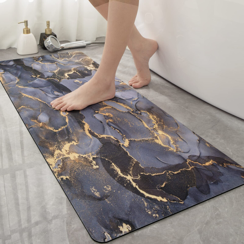 Elegant Bathroom Stone Mat, Super Absorbent Diatomaceous Earth Bath Mat for Quick Drying and Non-Slip Protection in Your Bathroom and Kitchen (Stylish