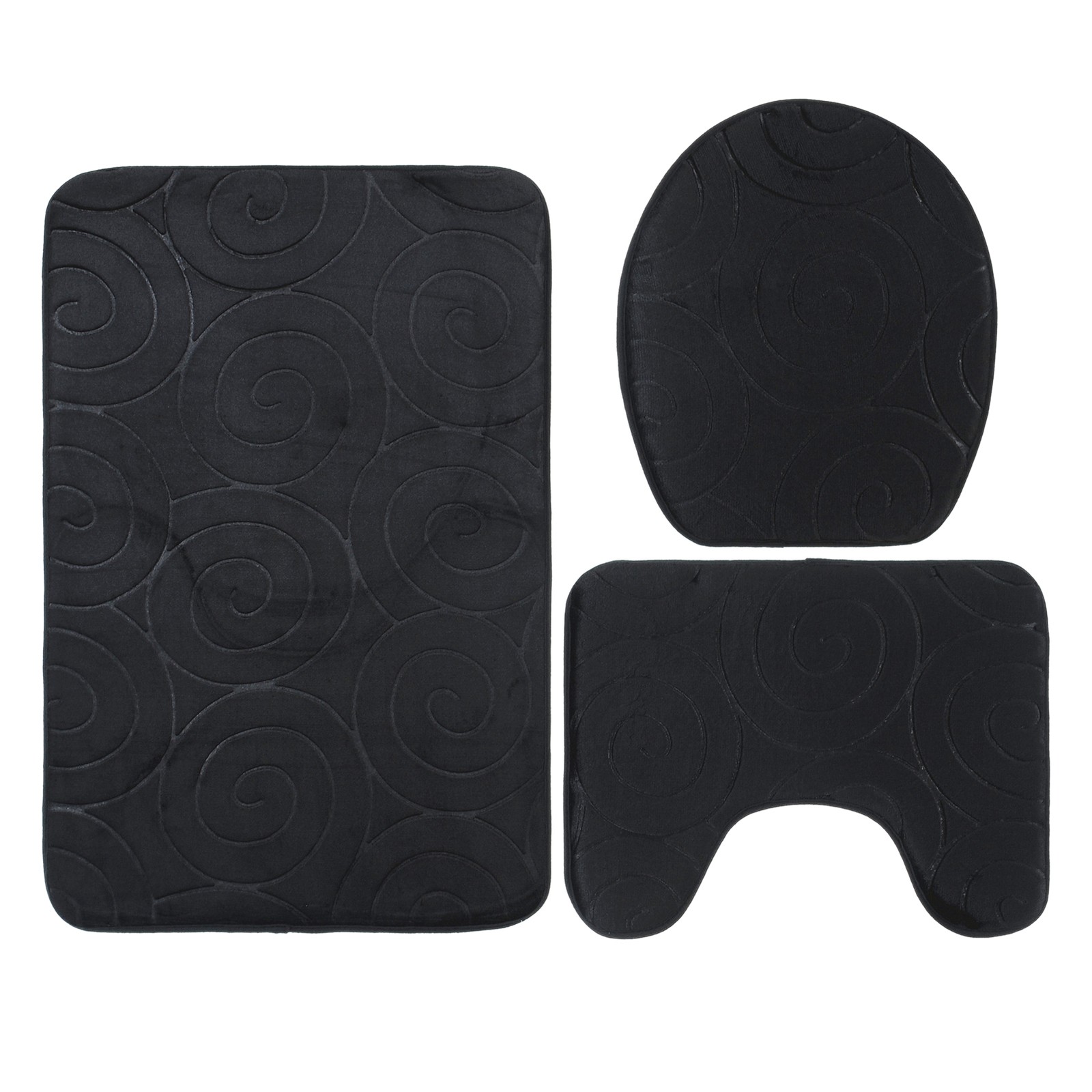 Black 3 PCS Bathroom Mat Set Stone Embossed Toilet Lid Cover Floor Mats Bat SG