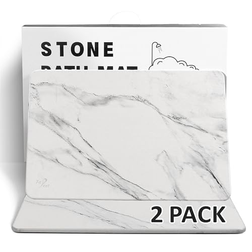2 Pack Stone Bath Mat - Diatomaceous Earth Bath Mat Fast-Drying Stone Drying Mat Super Absorbent Diatomite Mats for Bathroom, Dish Drying, Bathtub (White Marble & Heart)