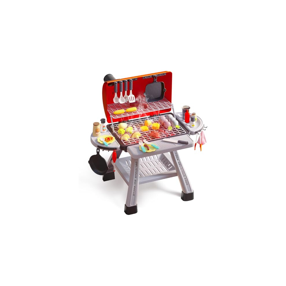 CUTE STONE Kids BBQ Grill Playset, Kitchen Toy Set, Realistic Smoke Toy BBQ Grill Playset with Toy Grill, Toy Kitchen Accessories, Indoor/Outdoor
