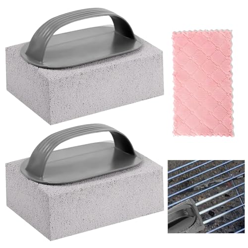 VEGCOO Pumice Stone for Cleaning Oven, 2Pcs Grill Cleaning Brick Block with Handle, Magic Pumice Stone Grill Brick Remove Oil Stains and Grease for Oven BBQ