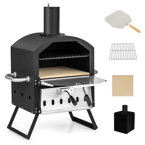 Outdoor Wood Fired Pizza Oven with Pizza Stone, Pizza Peel, Grill Rack, for Backyard and Camping