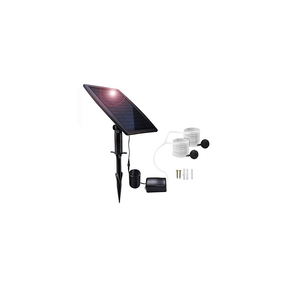 Sunydog Solar Powered Air Pump Kit, 2W Plug-in Solar Pond Oxygenator Fish Tank Oxygenator Aquarium Oxygen Aerator Air Pump Fishing Aerator with Pipe Air Bubble Stones for Garden Fish Tank Outdoor Pool