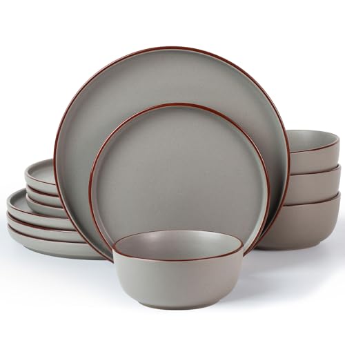 Mercury Plates and Bowls Sets, Speckled 12-Piece Plate Set, Stoneware Dinner Set for 4 with Dinner Plates, Dessert Plates, Cereal Bowls, Microwave & Dishwasher Safe, Dark Gray