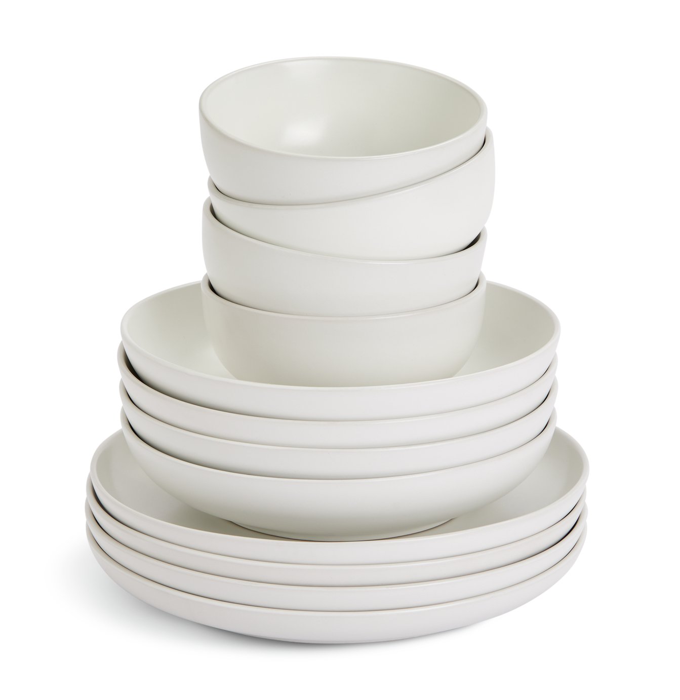 Habitat 12 Piece Stoneware Dinner Set - Matte White
