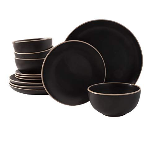 Gibson Home Rockaway Round Stoneware Dinnerware Sets, Service for 4 (12pcs), Black