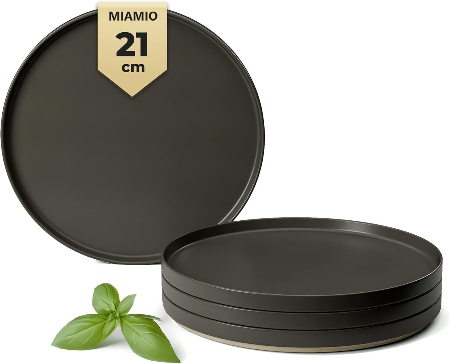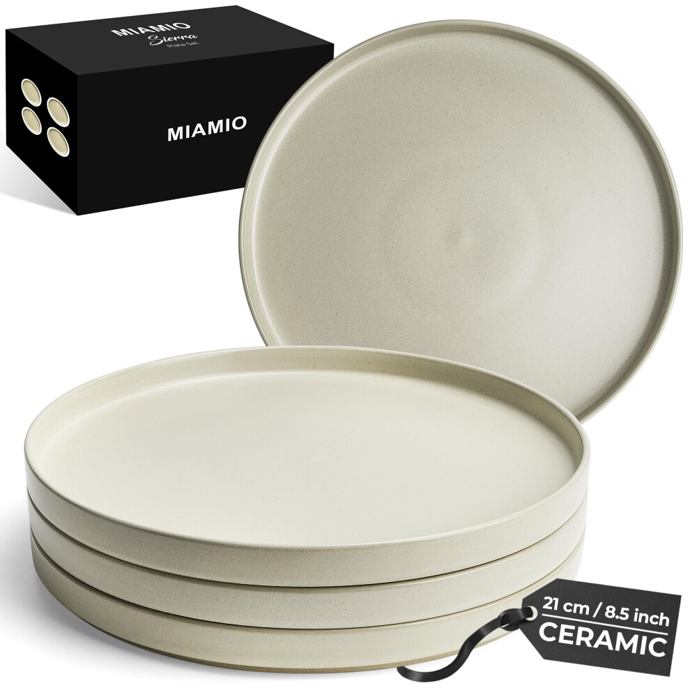 MIAMIO ? 21 cm, Plates Set for 4 / Dinnerware Sets for 4 People, Beige Matte Stoneware, Dishwasher, and Microwave Safe ? Sierra Collection