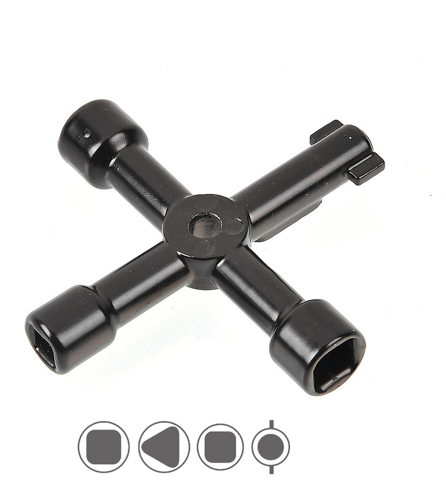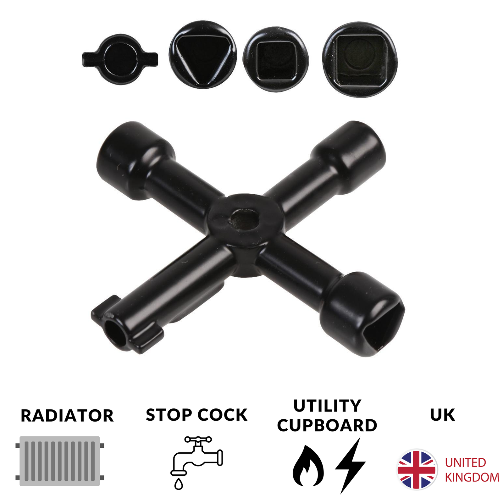4 Way Utility Key - Plumbing Radiator Bleed Gas Electric Meter Stop Cock Tap