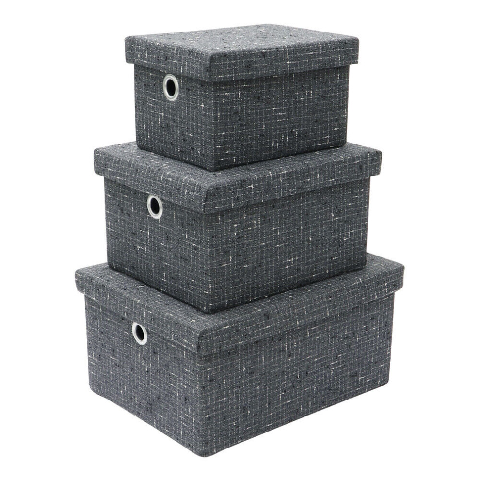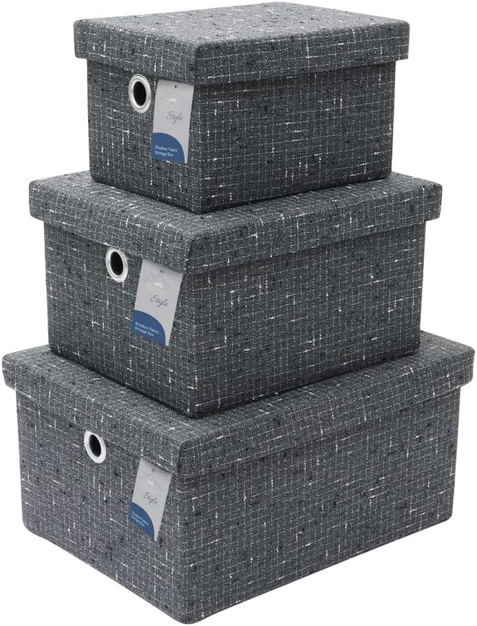 JVL Shadow Rectangular Fabric Storage Baskets with Lids, Set of 3