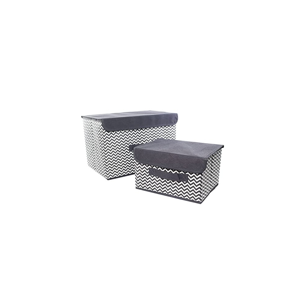 Clay Roberts Storage Baskets with Lids, Large & Medium, Pack of 2 Storage Chests, Grey & White, Fabric Storage Boxes Set for Storage Organiser Units,