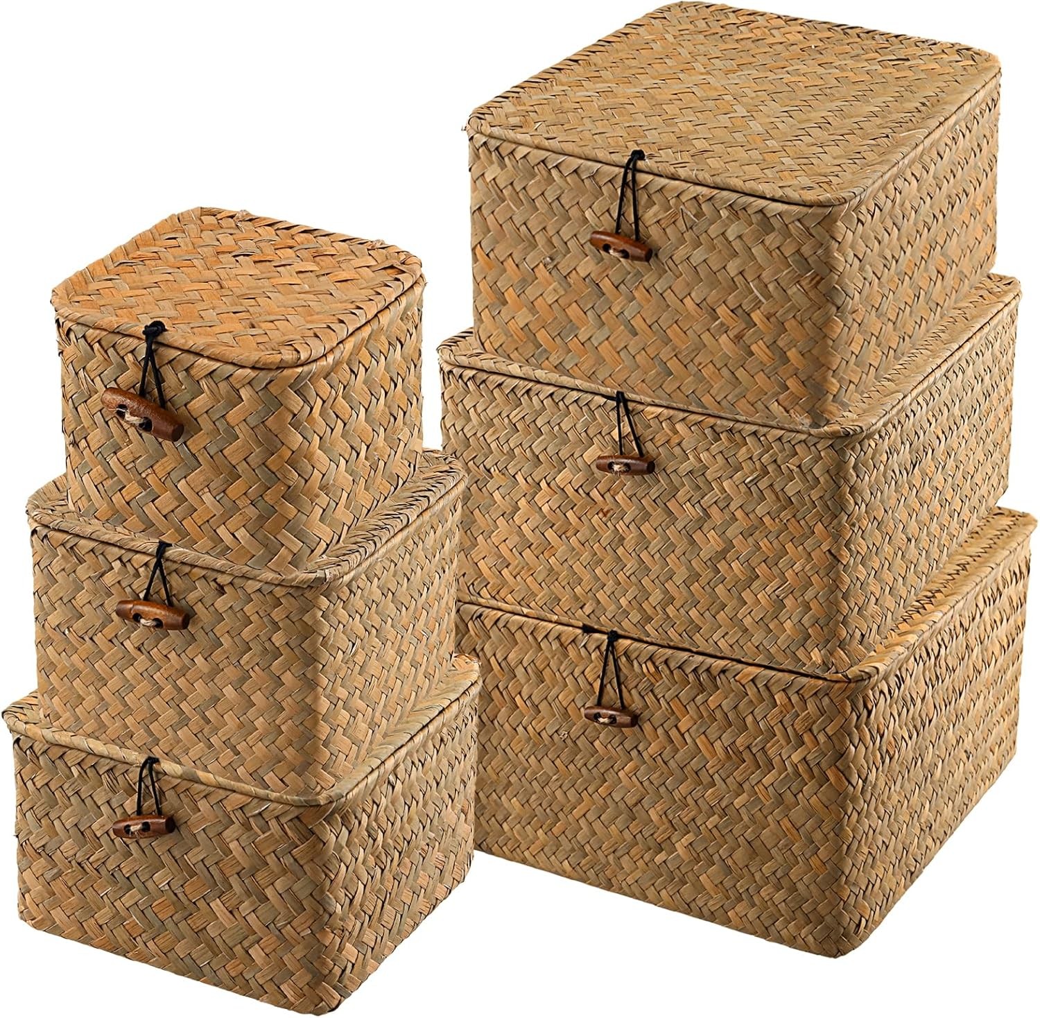 FEILANDUO Wicker Storage Baskets with Lids Seagrass Woven Baskets for Shelves S