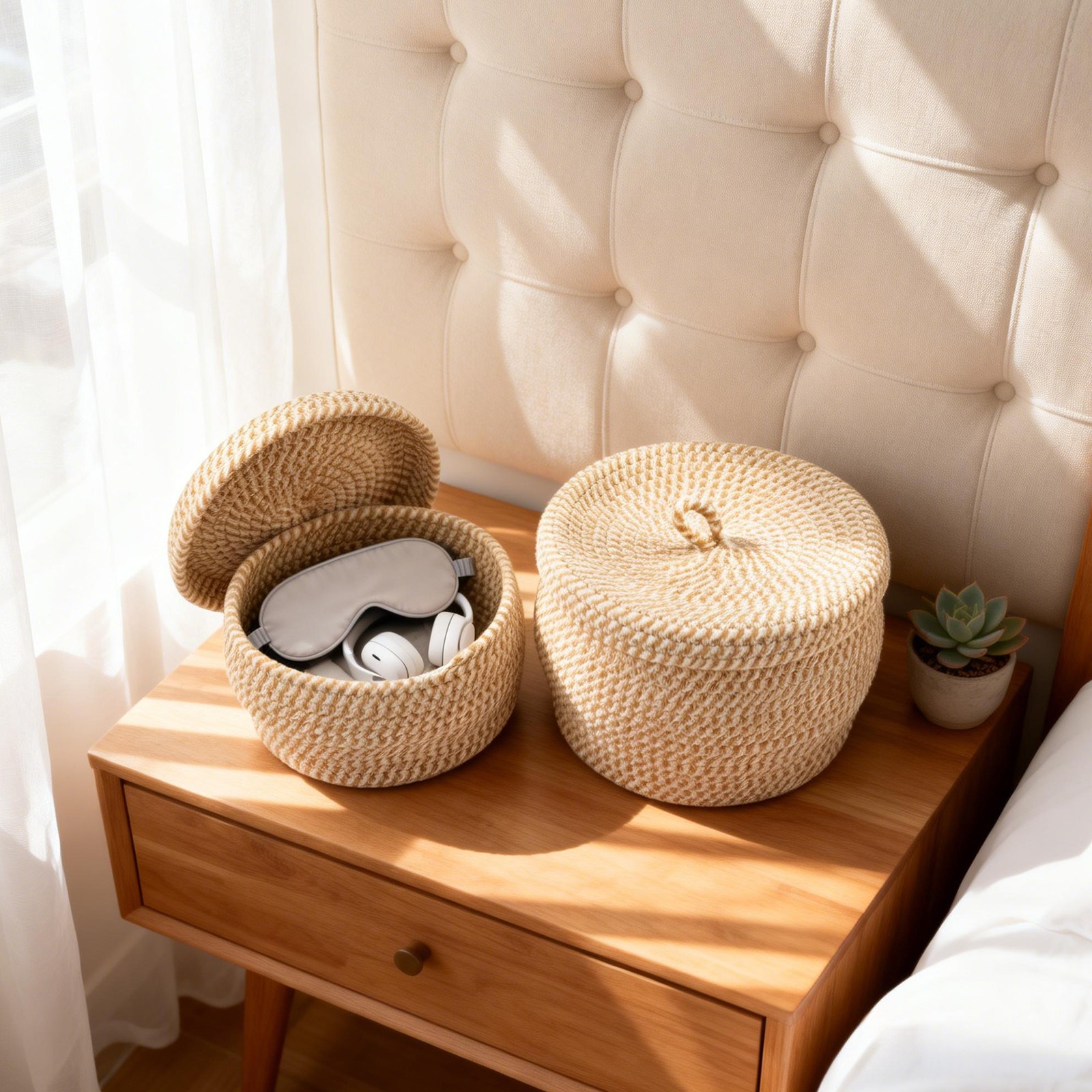 2pcs Cotton Rope Woven Storage Baskets with Lids, Egg Basket,Round Decorative