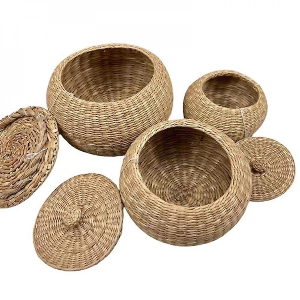 ximie Wicker Seagrass Flower Pot Boxes Sundries Storage Baskets with Lids Weaving Snack Storage Box Wardrobe Table Round