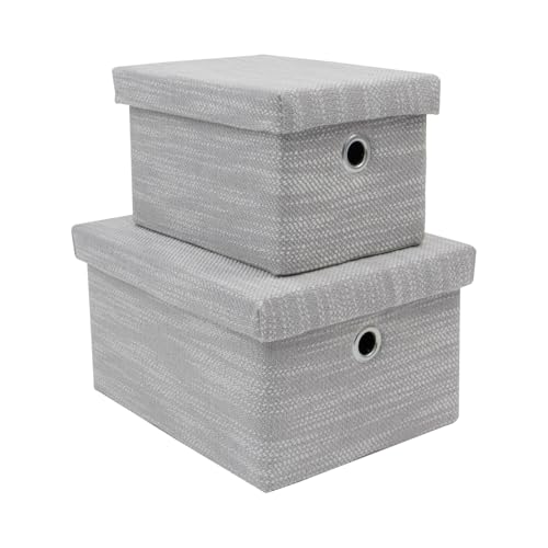 Clay Roberts Storage Baskets with Lids, Large & Medium, Pack of 2 Storage Chests, Grey, Fabric Storage Boxes Set for Storage Organiser Units, Homes