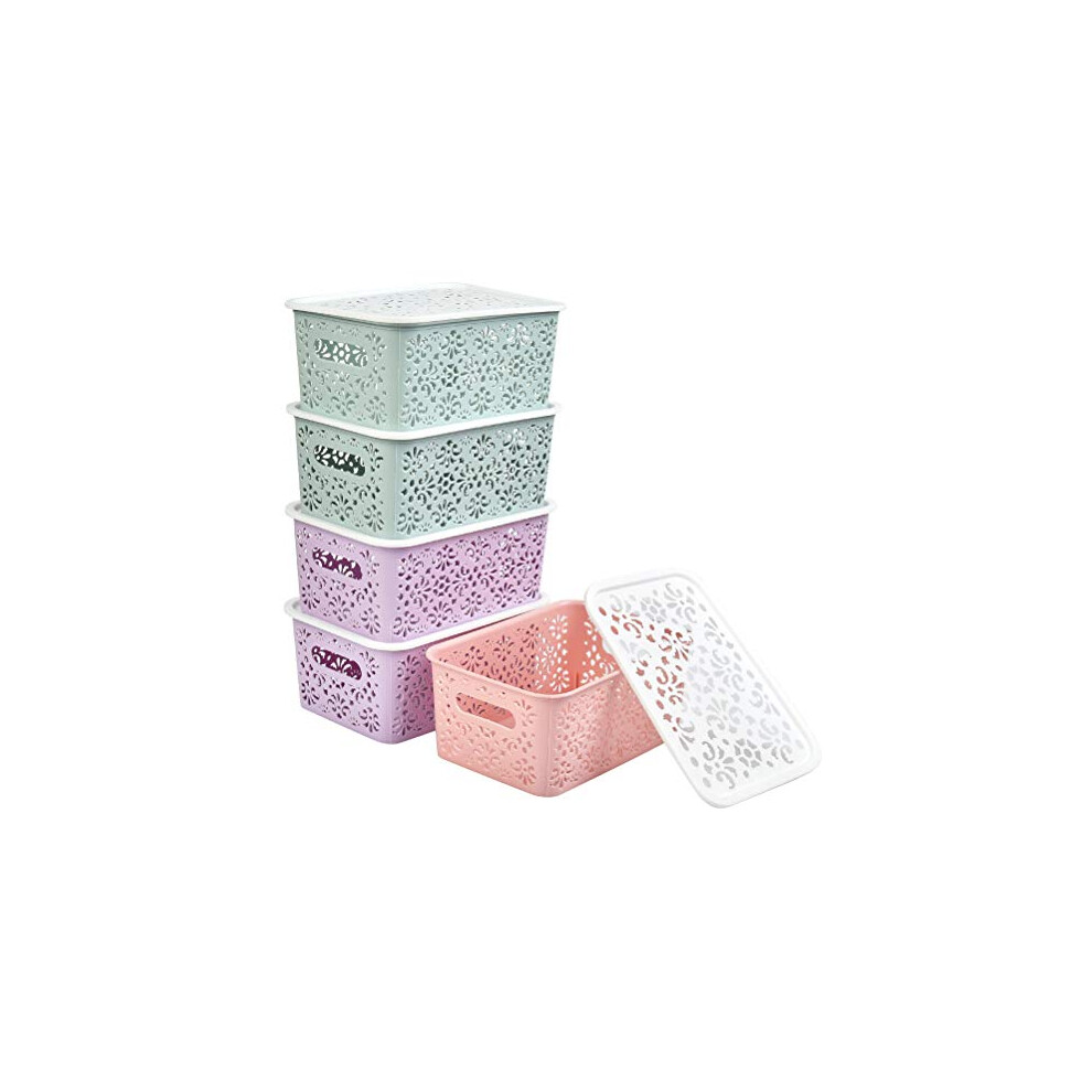 5Pcs Plastic Storage Baskets with Lids Muti-colour Plastic Organizer Baskets with Handle Small Plastic Rattan Baskets