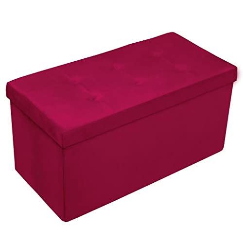 HomeHarmony® Velvet Folding Storage Bench Ottoman Footrest Seat Toy Box Storage Chest (Aubergine, Medium)