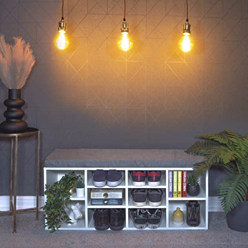 VonHaus Shoe Storage Bench with Padded Seat - Grey Hallway Bench & 4 Open Storage Shelves - Multifunctional Hall Footwear Unit with Wood Effect Top - Storage Solutions for Entryway & Porch - Ash Hall
