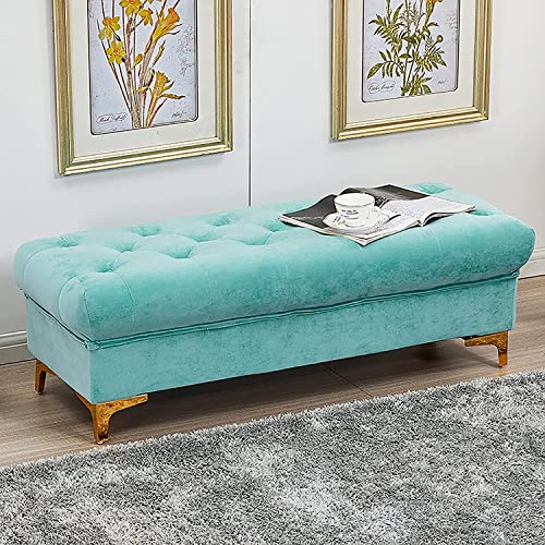 QRZCZXNP Modern Home Storage Bench Seat Premium Velvet Padded End of the Bed Seat with Storage Space, Living Room Entrance Area Comfortable Rest Upholstered Stool Shoe Light Green 100 x 40
