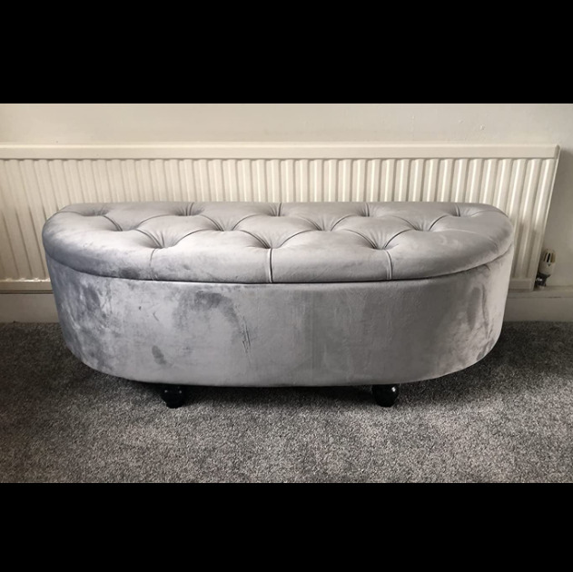 Bonlife Grey Velvet Ottoman Storage Bench with Seat,Foldable Stool Living Room Furniture,Oval Large Toy Box Storage Chest with Lid,76x38x38cm