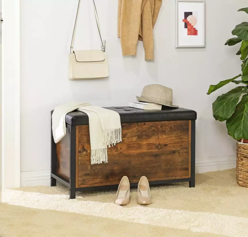 Hallway Entryway Rustic Industrial Storage Bench Lift Up Seat PU Leather Cushion