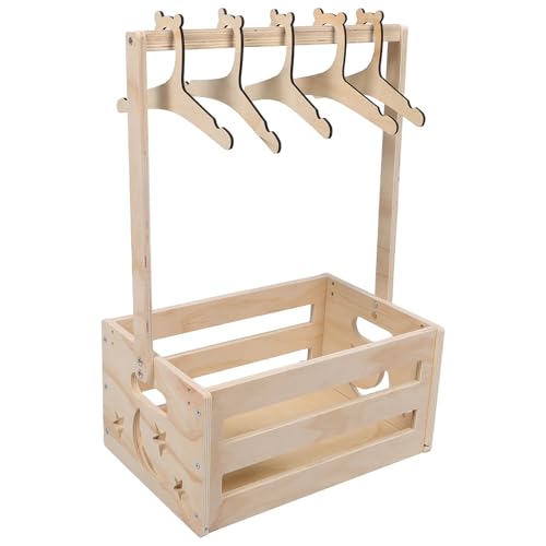 Toddmomy Wooden Boy Girl's Clothing Storage Box Nursery Storage Box for Clothes Handle and Clothing Hanging Rack