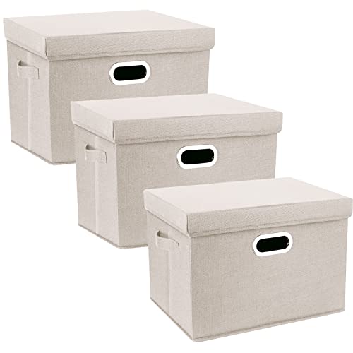 TYEERS Large Storage Box with Lid, Collapsible, Washable, Fabric Storage Box for Clothes, Wardrobe Storage, 44x30x29 cm, Set of 3, Beige
