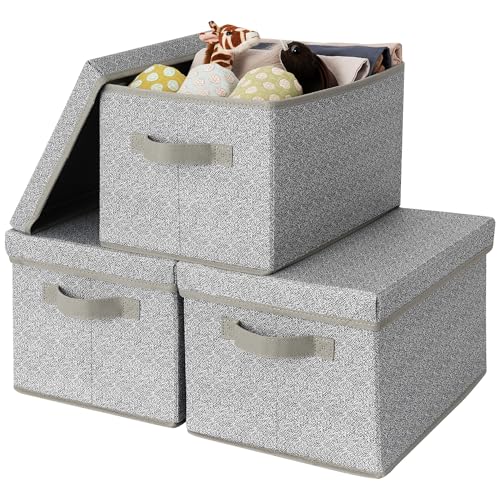 GRANNY SAYS Fabric Storage Boxes with Lids, Pack of 3 Grey Storage Box with Lid, Wardrobe Storage Organiser, Storage Baskets for Shelves, Foldable Storage Box for Bedroom Organising Clothes Toys