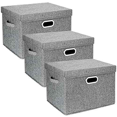 Yalixuan Fabric Storage Boxes with Lids, Pack of 3, Wardrobe Storage Organiser, Foldable Storage Box for Clothes, Toy, Photo, Closet, Bedroom, Home, 38 X 25 X 25cm (Grey)
