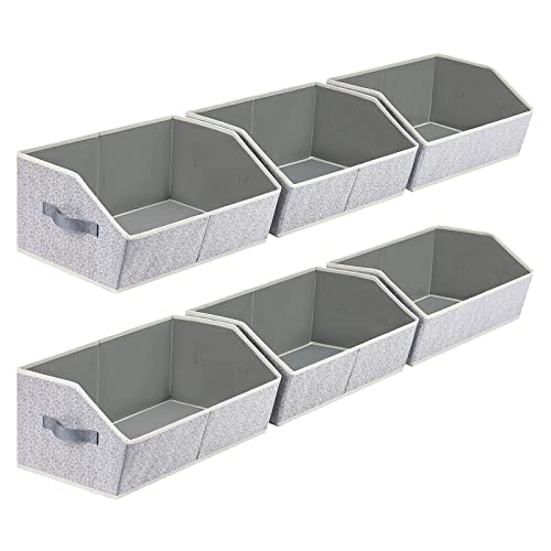 Homsorout Closet Organisers and Storage Basket - 6 Pack Large Trapezoid Foldable Open Bins Fabric Storage Box for Shelf Clothes, Books, Pets, Heather Grey