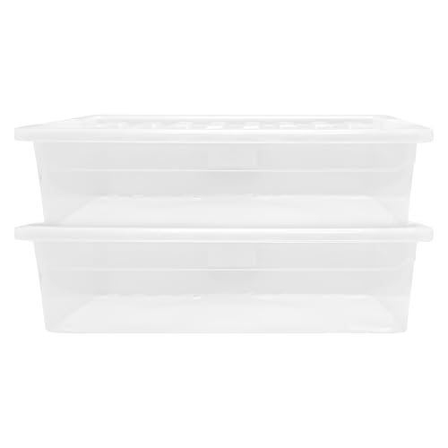 KMJ® 2 Pack - 45L Under Bed Storage Box with Lid – Large Plastic Storage Box for Clothes, Shoes, Toys Etc.– Clear Underbed Storage Boxes with Lids – Stackable Storage Boxes Plastic