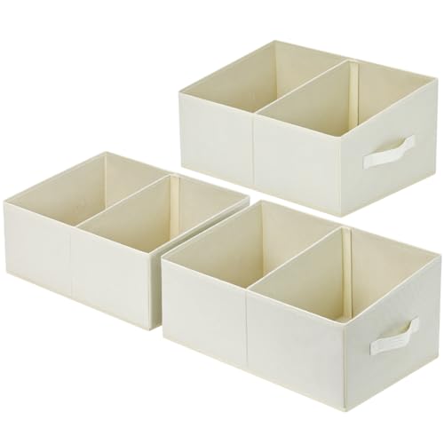 DIMJ 3 Pack Storage Boxes with Compartment, Foldable Storage Basket with Reinforced Handle, Trapezoid Fabric Wardrobe Storage Organiser Box for Clothes, Books, Toys, Closet, Shelves (Beige)