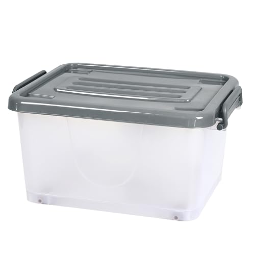 BH | 80L - Large Plastic Storage Box with Lids on Wheels | Pack of 1 | Heavy Duty | Stackable Clear Boxes |Containers Use for Home, office, Kitchen,