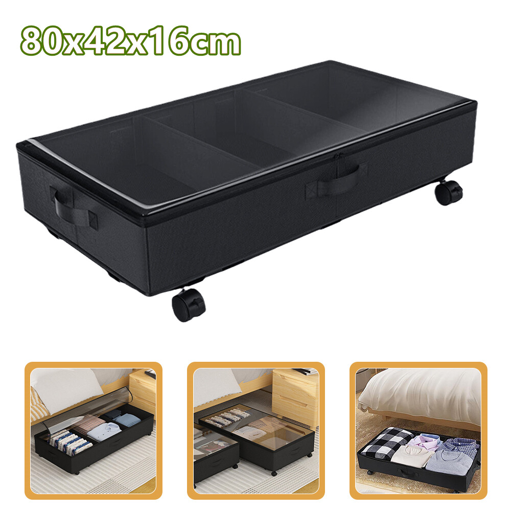 Underbed Storage Box on Wheels Lid Under Bed Sofa Dustproof Organize Extra Large