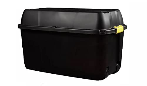 Heavy Duty Storage Box Trunk On Wheels Black 145 Litre Strata