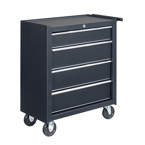 Karl home Rolling Tool Chest with 4 Drawers, Lockable Metal Storage Cabinet ToolBox on Wheels & Brakes, Portable Tool Cart Trolley for Garage, Workshop, Warehouse, Repair Shop, Black
