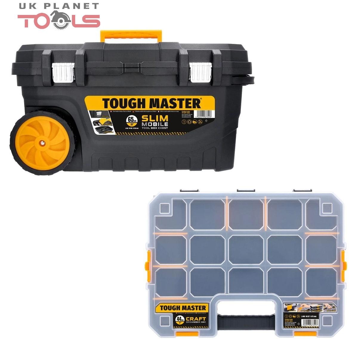 TOUGH MASTER Power Tool Storage Box on Wheels 60L & 17" Screw Storage Case