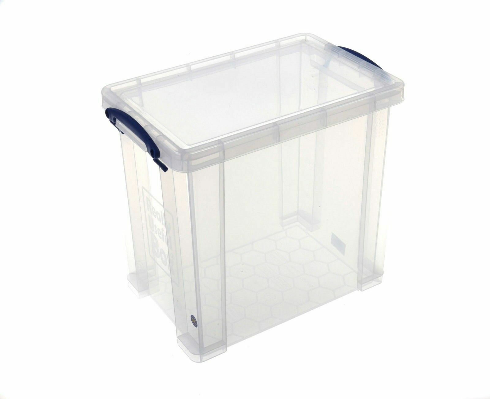 Really Useful Boxes 42 Litre Foolscap files Recycling Bin Storage Box lid clear