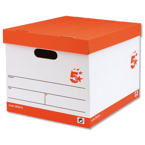Pack of 10 5 Star Storage Boxes for 5 A4 Lever Arch Files, W317xD384xH287mm, Red & White - (295276)